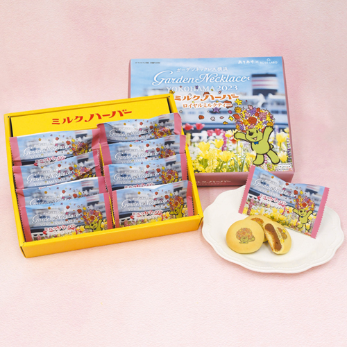 横浜市の花がバラであることにちなみ、水耕栽培で農薬を使わず食べられるバラの栽培をしているROSE LABO※の“食べられるバラ”「ルージュロワイヤル」をハーバー餡に練りこんで、バラのフレイバーを存分に味わっていただけるように仕上げました。パッケージの個包装は、表情豊かなガーデンベアを10種類、また商品本体にもガーデンベアやバラを10種類デザインしました。8個入商品にはそれらをランダムに入れ、春の訪れとともに華やかに開催されるガーデンネックレス横浜を、お菓子でも楽しんでいただけるようにと考えました。この盛り上がりを、横浜では初の開催となる4年後の「2027年国際園芸博覧会」に繋げられるよう、美しい港の風景や花と緑麗しい街並みをもつこの横浜の地で長年ご愛顧いただいているお菓子メーカーとして、お菓子で応援させていただきます。
